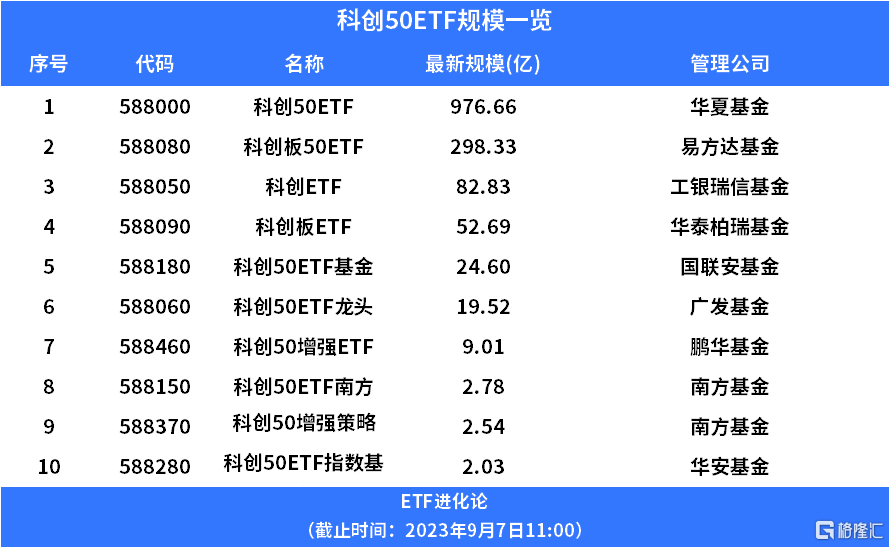 华夏科创50ETF当前规模976亿元,仅次于市场最大的规模的华泰柏瑞沪深300ETF。
