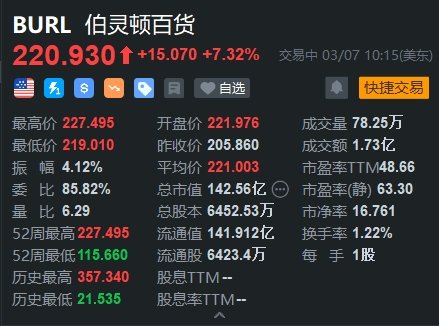 美股异动丨伯灵顿百货涨超7% Q4利润和销售额高于预期
