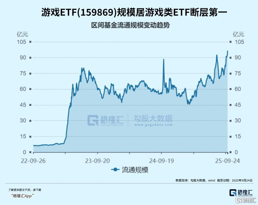 游戏ETF(159869),也是规模较大、流动性较好的标的,持续获得资金净流入,近10日吸金10.62亿元,最新规模近百亿,创历史新高,规模居游戏类ETF断层第一。