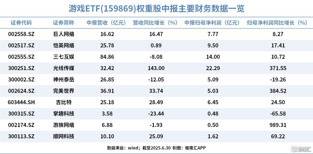 游戏ETF(159869)十大权重股中,超过半数营收实现同比增长,8家归母净利润实现同比增长。