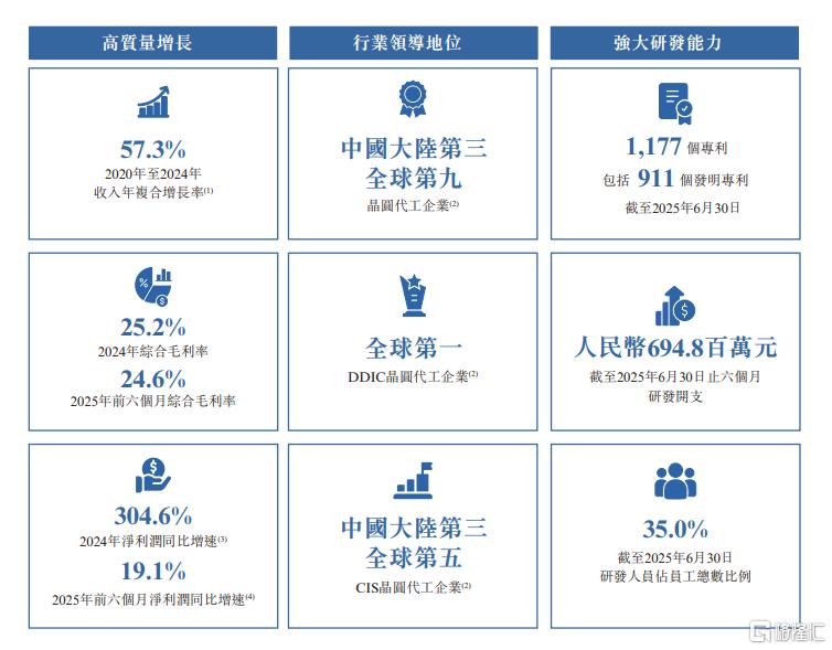 2022年、2023年、2024年12月31日止年度以及截至2024年及2025年6月30日止六个月,公司收入分别为人民币100.26亿元、人民币71.83亿元、人民币91.20亿元、人民币43.31亿元及人民币51.30亿元。同期,公司拥有人应占利润分别为人民币30.45亿元、人民币1.19亿元、人民币4.82亿元、人民币1.95亿元及人民币2.32亿元。研发开支分别为人民币8.57亿元、人民币10.58亿元、人民币12.84亿元、人民币6.14亿元及人民币6.95亿元。通过持续投资及紧贴客户的需求,公司于涵盖DDIC、CIS、PMIC、LogicIC及MCU平台的成熟技术节点建立独有优势。
