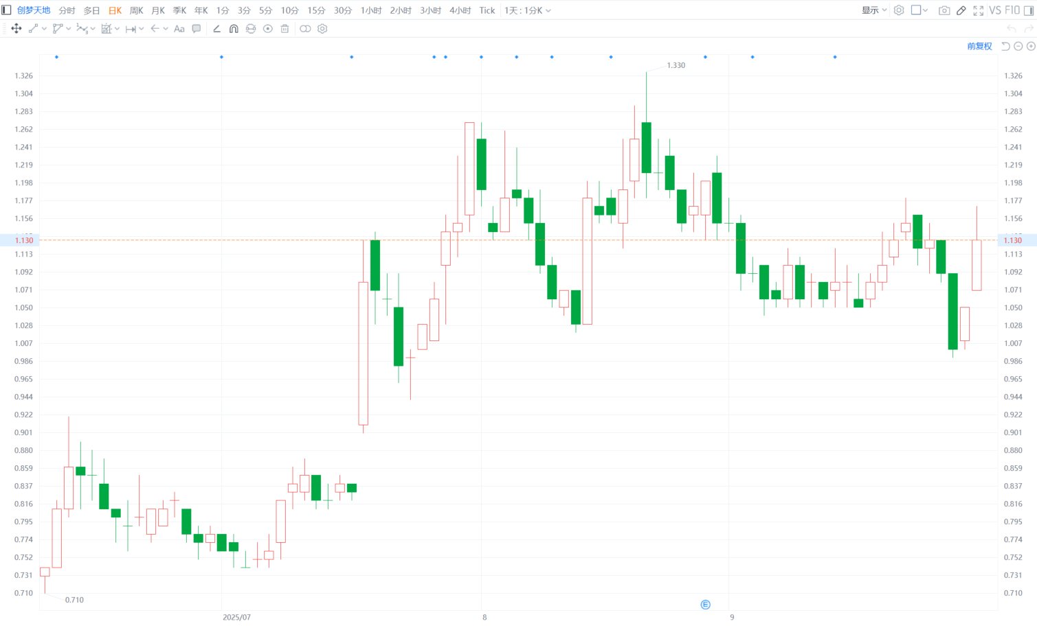 创梦天地(1119.HK)今日早盘一度大涨11.43%至1.17港元。