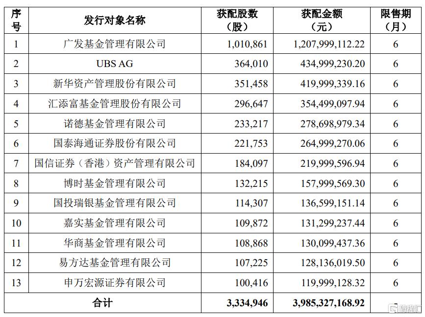 格隆汇9月30日丨寒武纪(688256.SH)公布定增发行情况报告书,根据投资者申购报价情况,并严格按照认购邀请书中确定的发行价格、发行对象及获配股份数量的程序和规则,确定本次发行价格为1,195.02元/股。本次发行对应的认购总股数为3,334,946股,认购总金额为3,985,327,168.92元。本次发行对象最终确定为13家。