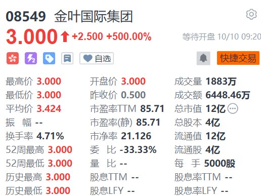 香港本地老牌机电工程承建商金叶国际集团(8549.HK)今日首日上市高开500%,报3港元。金叶国际集团此次IPO公开发售获11464.72倍认购,超越大行科工的7557倍,成历来超额认购倍数最高的“IPO超购王”。