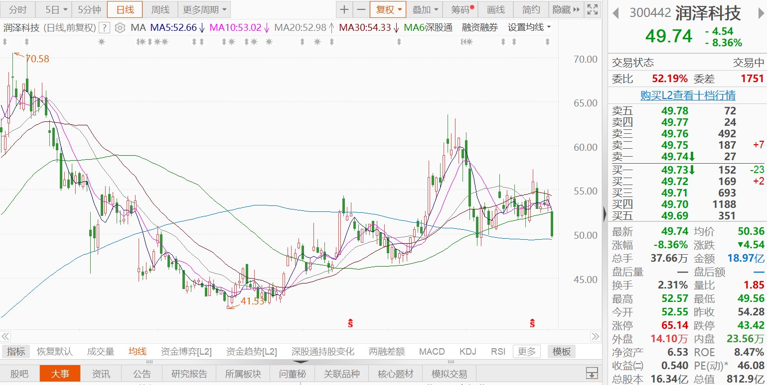 润泽科技(300442.SZ)跌8.36%,报49.74元,总市值812.9亿元。润泽科技公告称,股东宁波大容明琛创业投资合伙企业(有限合伙)计划自本公告披露之日起15个交易日后90日内,通过集中竞价交易和大宗交易方式合计减持不超过16,343,434股股份,占公司总股本的1.0000%,占扣除公司回购专用账户股份后总股本的1.0023%。减持原因为自身资金需求,减持股份来源为公司首次公开发行前已持有的股份及二级市场增持股份。(格隆汇)