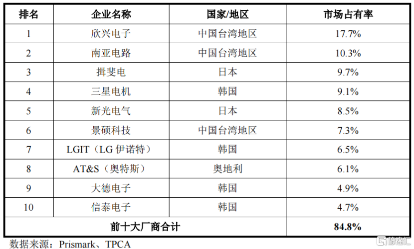 2023年全球前十大封装载板厂商,来源:招股书