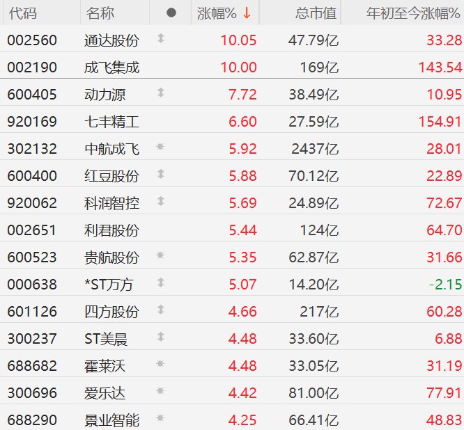 A股异动丨军工股走强,成飞集成涨停,红豆股份涨超5%