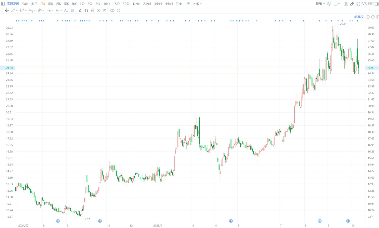 索通发展(603612.SH)今日盘中一度跌4.26%至24.25元。索通发展公布,郎光辉先生及玄元科新182号于2025年9月5日至2025年10月17日期间,通过集中竞价、大宗交易的方式,合计减持公司无限售流通股796.55万股,郎光辉先生及其一致行动人合计持有公司股份比例由27.89%减少至26.29%,权益变动触及1%刻度。(格隆汇)