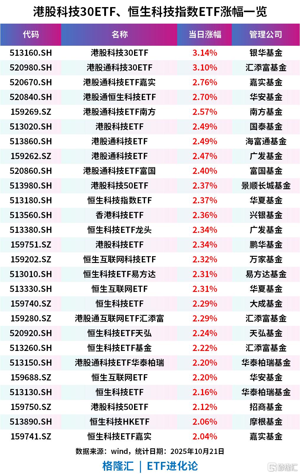 港股科技股上涨,港股科技30ETF、港股通科技30ETF涨超3%;港股通科技ETF嘉实、港股通恒生科技ETF、港股通科技ETF南方、港股科技ETF、港股通科技ETF、港股通科技ETF、 港股通科技ETF富国、港股科技50ETF、恒生科技指数ETF、香港科技ETF、恒生科技ETF龙头、 港股科技ETF、恒生互联网科技ETF、恒生科技ETF易方达、恒生互联网ETF、 恒生科技ETF、 港股通互联网ETF汇添富、恒生科技ETF天弘、恒生科技ETF基金、港股通科技ETF华泰柏瑞、 恒生互联网ETF、恒生科技ETF、港股科技50ETF、恒生科技HKETF、 恒生科技ETF嘉实涨超2%。