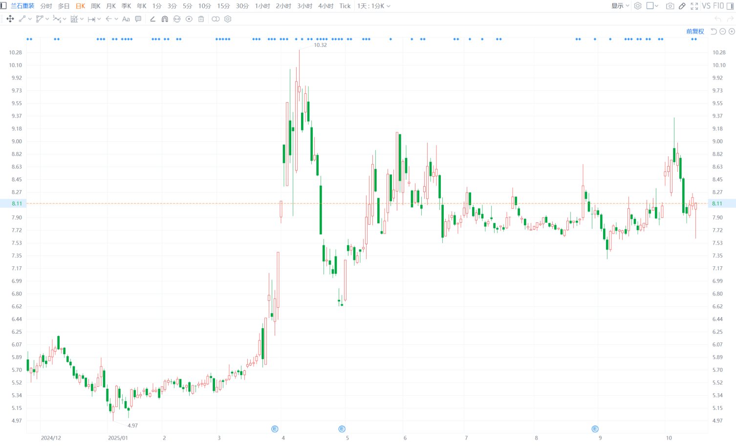 兰石重装(603169.SH)今日盘中一度跌7.2%至7.6元,股价创9月12日以来逾一个月新低。兰石重装公布,华菱湘钢因业务发展需要,计划自本次减持计划公告日起15个交易日之后的3个月内,拟通过集中竞价交易方式对所持兰石重装股份进行减持,减持股份不超过1306.29万股,减持比例不超过公司总股本的1%。(格隆汇)