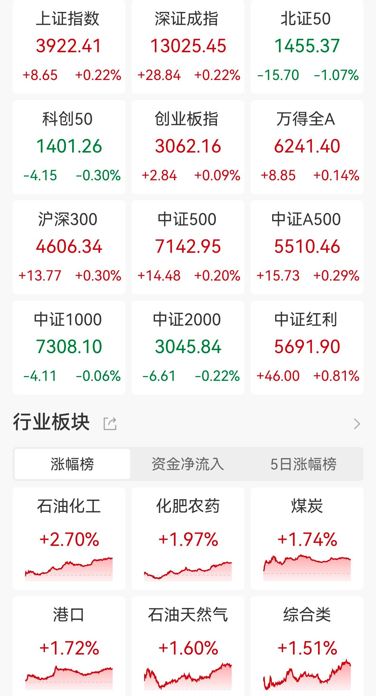 A股三大指数今日早盘震荡走低,尾盘拉升集体翻红;截至收盘,沪指涨0.22%报3922点,深证成指涨0.22%,创业板指涨0.09%,北证50指数跌1.07%。全市场成交额1.66万亿元,较前一交易日缩量295亿元,近3000股上涨。