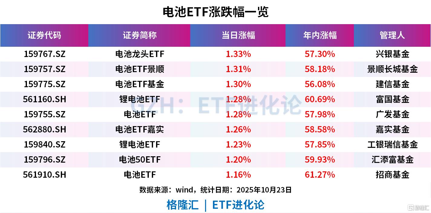 锂电上涨,多氟多涨超8%,赣锋锂业涨超5%,电池龙头ETF、电池ETF景顺、电池ETF基金、锂电池ETF、电池ETF、电池ETF嘉实、锂电池ETF、电池50ETF、电池ETF上涨。