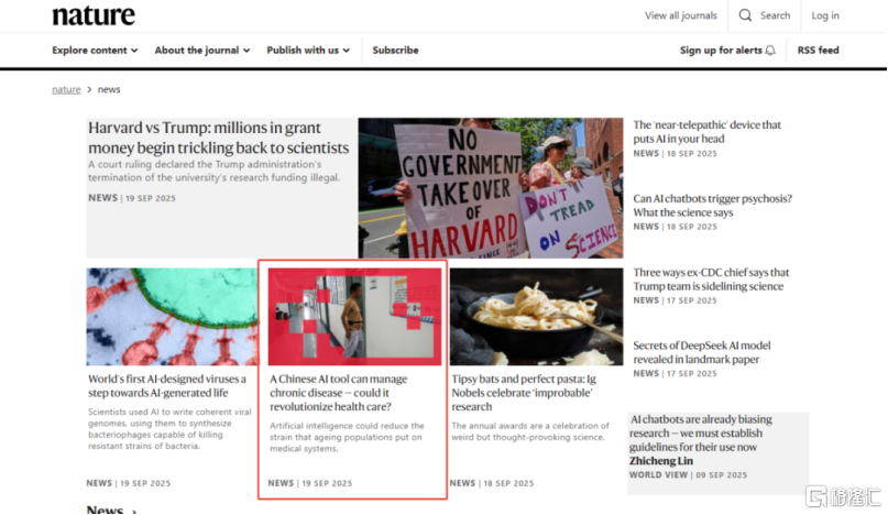 公司的这一AI创新成果更是荣登《Nature》新闻头版,作为《Nature》首次报道中国医疗的AI大模型及企业,国际学术界的高度认可直接印证了其技术的行业领先性。