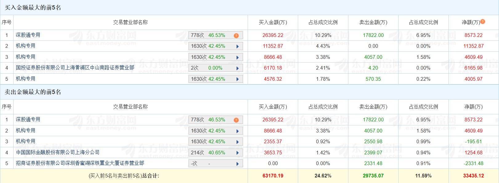 深南电路(002916.SZ)今日涨停,换手率1.87%,成交额25.65亿元。龙虎榜数据显示,深股通买入2.64亿元并卖出1.78亿元,净买入8573万元;四家机构买入2.7亿元并卖出7178万元,净买入1.98亿元;游资“温州帮”位列买四席位,净买入6166万元。上榜席位全天买入6.32亿元,卖出2.97亿元,合计净买入3.34亿元。(格隆汇)