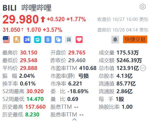 哔哩哔哩(BILI.US)盘前涨3.57%,报31.05美元。光大证券发研报表示,B站自研的搜打撤单机PVE游戏《逃离鸭科夫》于10月16日全球发售,PC平台六大渠道同步上线,国区售价为58元,首发期间提供88折优惠。开售仅3天销量突破50万份,在线玩家峰值超22万人,保持上升趋势。根据官方最新发布的消息,截至10月22日晚该产品销量已突破100万份,在Steam收获8465篇评价,其中96%为好评,达到“好评如潮”。该行预计该产品最终销量有望超300万份,对应约超1.5亿元营收。(格隆汇)