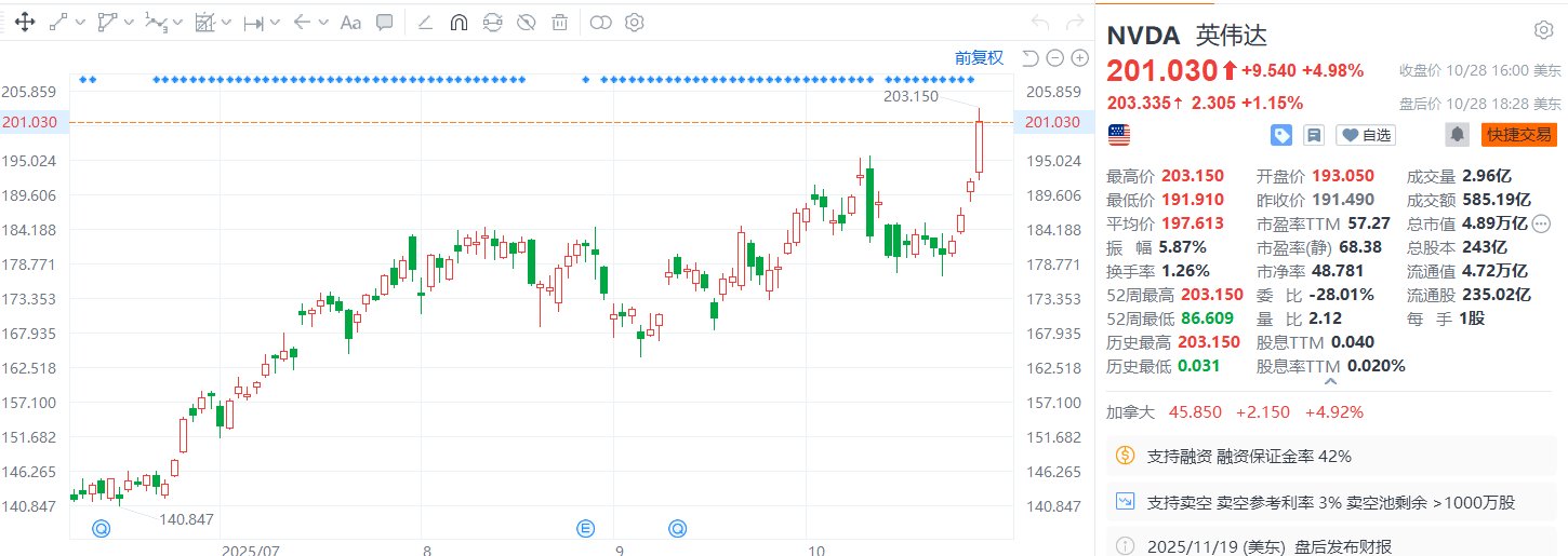 美股异动|英伟达涨约5%,总市值逼近5万亿美元,多项合作助推涨势