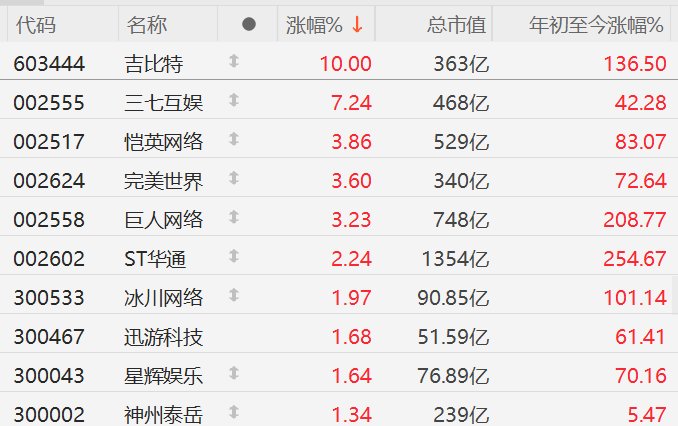 A股异动丨业绩亮眼,游戏股普涨,吉比特涨停,三七互娱涨超7%