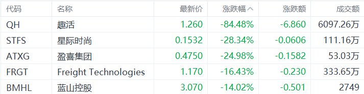 美股异动丨趣活跌84.48%,为跌幅最大的中概股