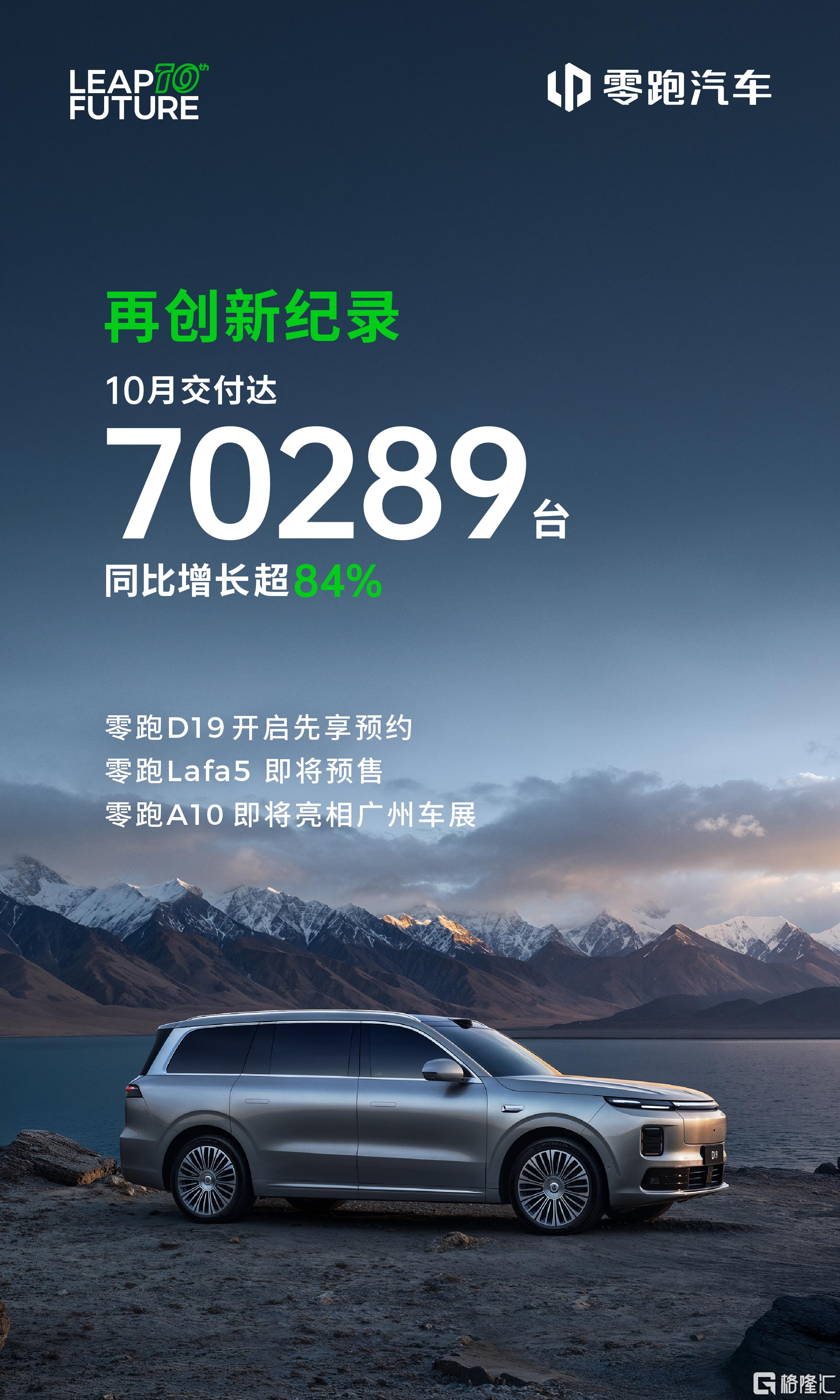零跑汽车10月交付达70289台,再次刷新造车新势力月销纪录