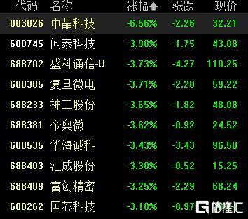 半导体股走低,中晶科技跌超6%,闻泰科技、盛科通信、复旦微电、神工股份、帝奥微等跟跌。