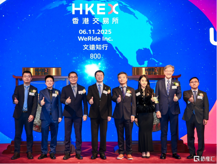11月6日,全球领先的自动驾驶科技公司文远知行WeRide(HKEX: 0800,Nasdaq: WRD)正式在香港交易所挂牌上市,股票代码0800.HK。继在纳斯达克上市成为全球Robotaxi第一股后,文远知行成为港股Robotaxi第一股,也是全球首家在"美股+港股"双重主要上市的自动驾驶科技企业。本次港股上市,公司全球发售股份总数(绿鞋前)为8825万股,触发回拨机制后公开发售股份为1765万股,国际配售股份7060万股,每股定价27.1港元,募资总额(绿鞋前)达23.9亿港元。