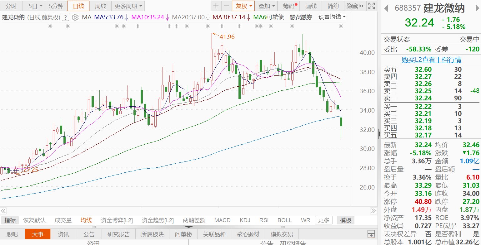 建龙微纳(688357.SH)今日跳空低开,现跌5.18%报32.24元创逾三个月新低,总市值32.26亿元。建龙微纳公告称,公司原拟以支付现金受让股权的方式合计取得上海汉兴能源科技股份有限公司不少于51%的股份。《合作意向协议》签署后,公司积极组织交易各方推进本次交易,聘请了专业的中介机构对标的公司展开尽调,截至目前在与重大资产重组有关各方积极磋商和认真探讨后,认为本次实施重大资产重组的条件暂不成熟。为切实维护公司及全体股东利益,经公司审慎研究并与交易对方友好协商,交易各方一致同意终止本次交易事项,本次重大资产重组事项终止。(格隆汇)