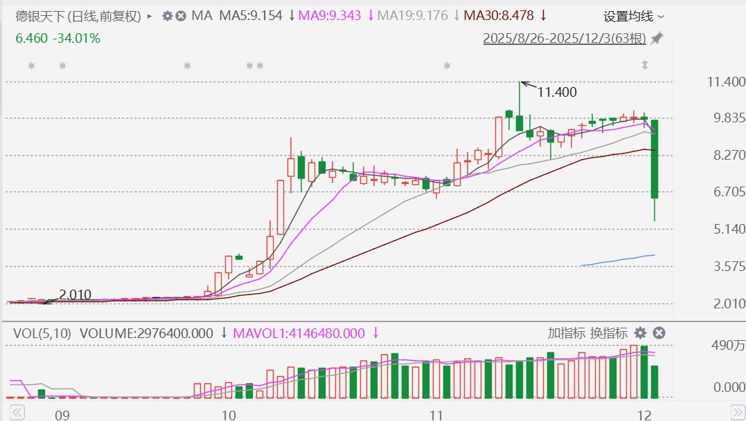 德银天下(2418.HK)盘中暴跌43.82%至5.5港元,股价创10月13日以来新低。消息面上,香港证监会周二收市后点名德银天下股权高度集中。证监会表示,最近就德银天下股权分布进行查讯,显示10大股东持货98.9%或5.46亿股H股,街货只有1.1%或605.45万股H股。除H股外,德银天下还有16.29亿内资股。
