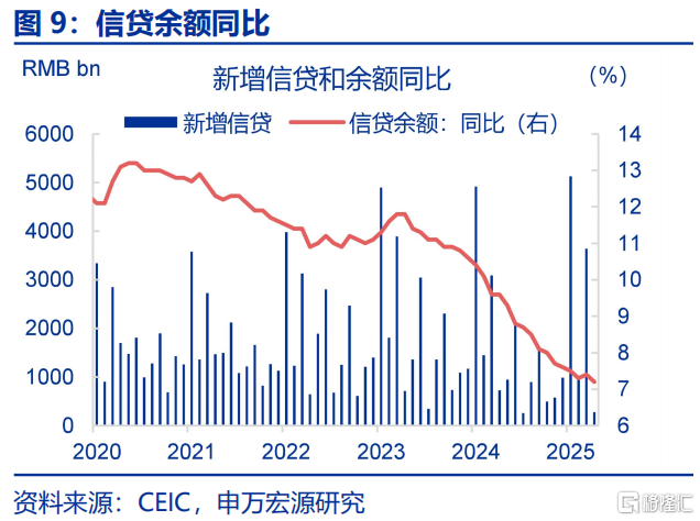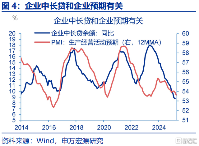 4月企业信用呈现“贷款回落而债券融资回升”格局,其中短贷的回落或因前期“冲量”,而中长贷少增或与化债推进和关税冲击企业预期有关。4月企业信贷和债券融资和3月呈现“镜像”,其中短期贷款的回落或和3月“冲量”有关。中长贷同比少增2500亿或和两大因素有关,是关税冲击压制企业预期(与4月PMI走弱形成印证),二是化债进程持续推进(3月影响更多体现在企业债券融资端,4月则传导至中长期贷款)。