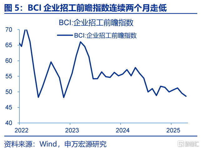4月居民信贷表现“不温不火”,就业市场压力叠加关税扰动预期,居民部门维持债务审慎态度。BCI企业招工前瞻指数连续两月(3-4月)低于50,折射就业市场承压现状,叠加关税冲击带来的预期扰动,居民部门维持债务审慎态度。值得注意的是,消费贷政策在3月边际放松后4月再度收紧,这种节奏调整可能对月度信贷分布产生结构性影响。
