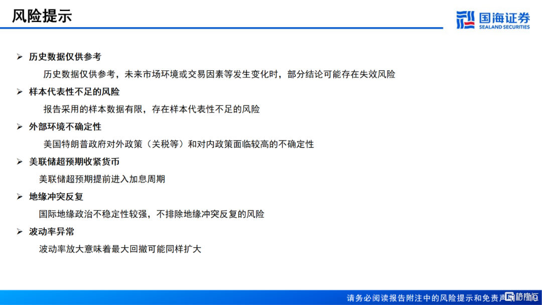 风险提示:历史数据仅供参考、样本代表性不足的风险、外部环境不确定性、美联储超预期收紧货币、地缘冲突反复、波动率异常。