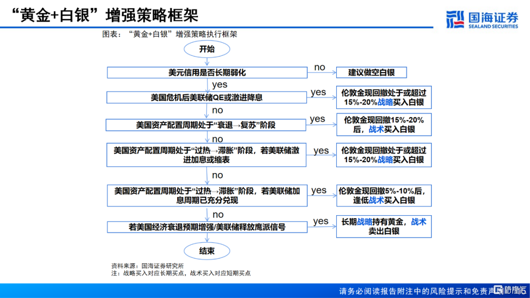 3、美元信用弱化前提不变,美国资产配置周期处于“过热→滞胀”阶段,如果美联储激进加息或缩表,伦敦金现回撤处于或超过15%-20%,白银或有望迎来长期战略性布局机会。