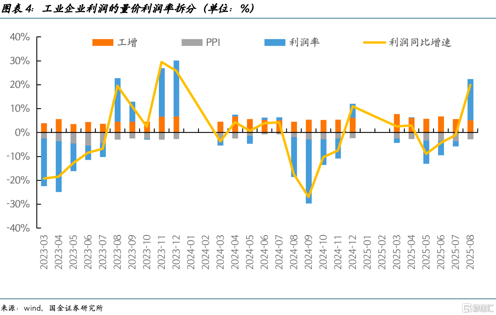 分行业看,中游利润维持韧性,上游利润大幅好转,下游利润由负转正。