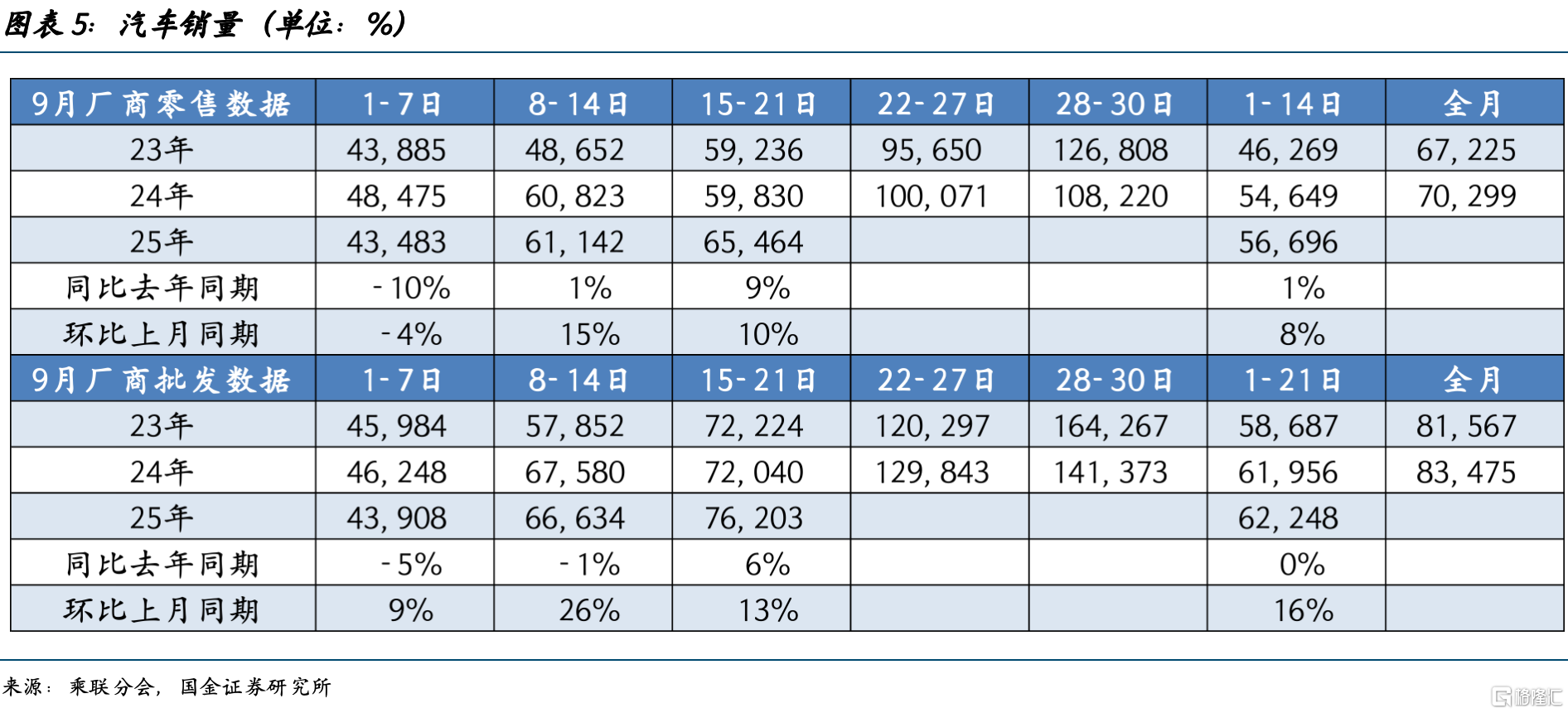 从销量上看,去年9月17日是中秋节,汽车销量基数偏低,今年9月第三周全国乘用车市场日均零售同比去年9月同期增长9%,带动前三周汽车销量回升至1%。