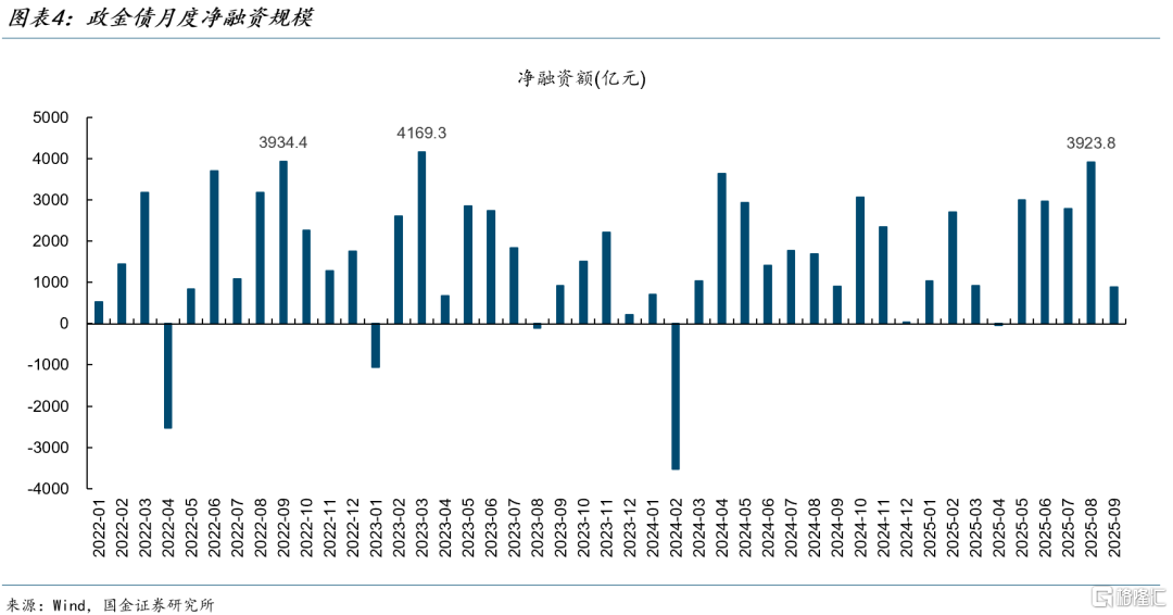 今年8月,政金债净融资规模达到3923.8亿元,为2024年以来最高值,10年期政金债发行规模达2000亿元,与2022年9月类似。这意味着新型政策性金融工具的首批资金或已到位,实际投放节奏将快于预期。