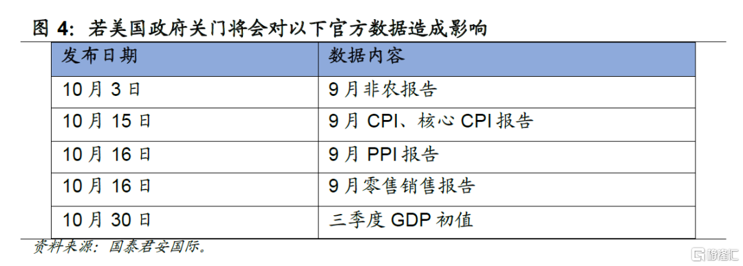另一个值得关注的问题是,美国联邦政府的当前财年资金将于9月30日正式耗尽,尽管共和党在参议院占有微弱多数,但通过拨款法案需要至少七名民主党参议员的支持。由于两党在支出问题上日益僵持,美国政府关门的风险升高。一旦政府关门,市场最直接的感受将是迎来一个经济数据的“真空地带”:负责发布就业和通胀等核心数据的美国劳工部(DOL)及其下属的劳工统计局(BLS)很可能在10月1日关闭。如果政府关门时间延长,美联储在9月17日和10月29日两次利率决策会议之间,将几乎无法根据任何官方数据辅助其政策决议,同时也可能压缩美联储违背其经济预测和点阵图给出的路径指引而超预期、大幅度降息的可能性。