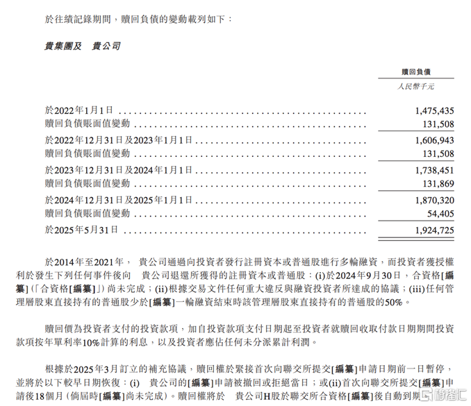 此外,此次IPO申报期间,公司过高的流动负债受到市场关注。从招股书来看,截至2025年5月31日,在公司20.37亿元流动负债总额中,其赎回负债达到19.25亿元。显然,若剔除赎回负债的影响,公司流动负债仅有1.12亿元。