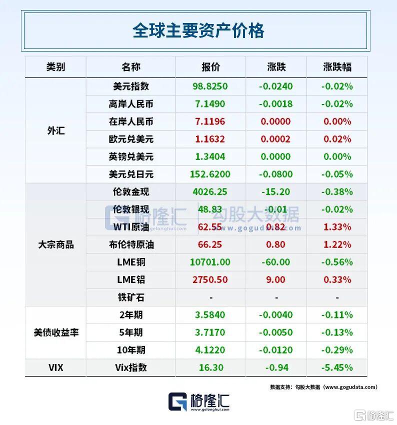 全球资产表现上,现货黄金涨势未停,一度触及4050美元/盎司,再创历史新高,日内上扬逾60美元。现货白银最高至49.45美元/盎司,一度触及伦敦市场白银历史最高拍卖价(1980年1月18日创下的每盎司49.45美元)。WTI原油期货收涨1.33%,报62.55美元/桶。布伦特12月原油期货收涨1.22%,报66.25美元/桶。