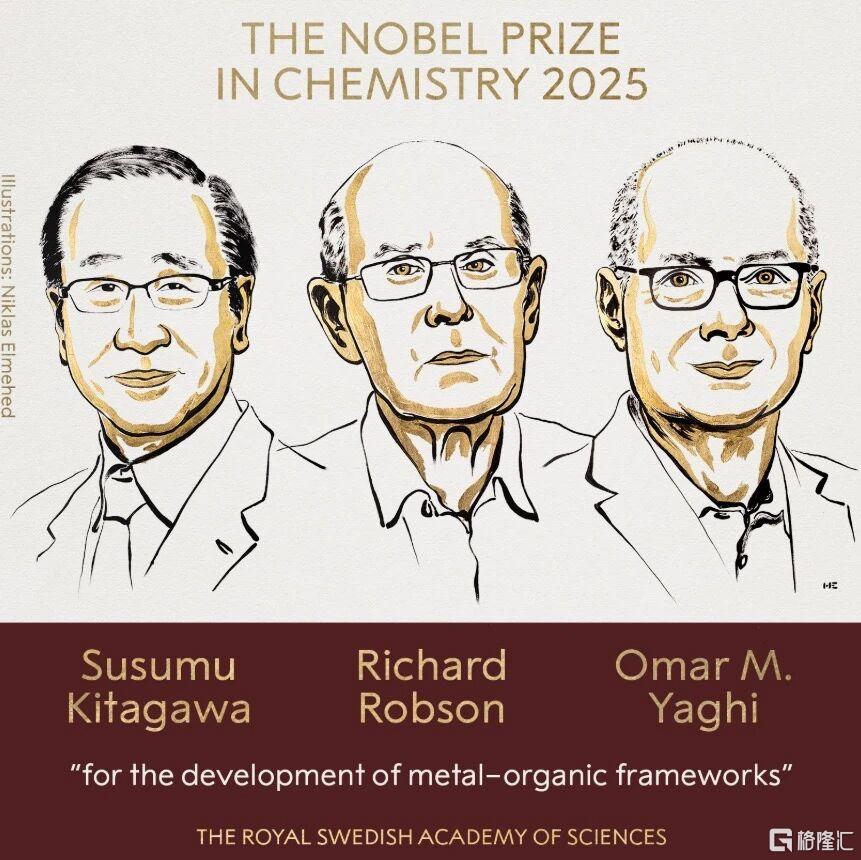 瑞典皇家科学院当地时间10月8日宣布,将2025年诺贝尔化学奖授予日本京都大学的北川进 (Susumu Kitagawa)、澳大利亚墨尔本大学的理查德·罗布森(Richard Robson)和美国加利福尼亚大学伯克利分校的奥马尔·M·亚吉 (Omar M. Yaghi)三位科学家,以表彰他们在“金属有机框架材料研发”方面的卓越贡献。