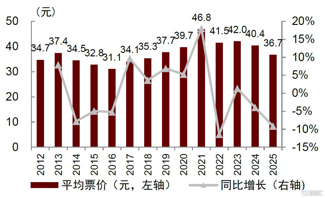 图表:2025年国庆档平均票价36.7元,同比下降9.1%