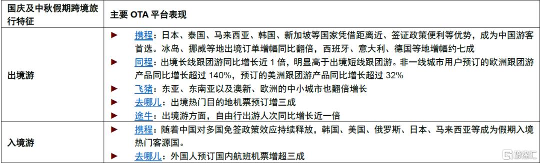 图表:主要OTA平台国庆及中秋期间出入境旅游表现