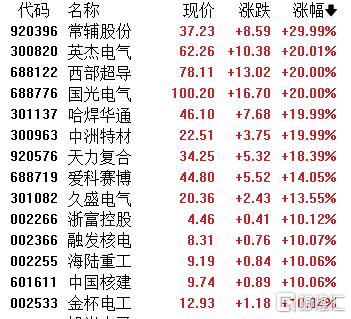 可控核聚变板块爆发涨停潮,英杰电气、西部超导、国光电气、哈焊华通、中洲特材涨停,天力复合、爱科赛博、久盛电气等跟涨。
