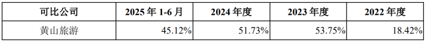 具体来看,2022年、2023年、2024年及2025年1-6月(简称“报告期”),长恨歌演艺收入的营收占比从33.5%提升至57.63%,占比较大;旅游索道的营收占比从50.08%降至35.77%,旅游餐饮的营收占比也有所下滑。
