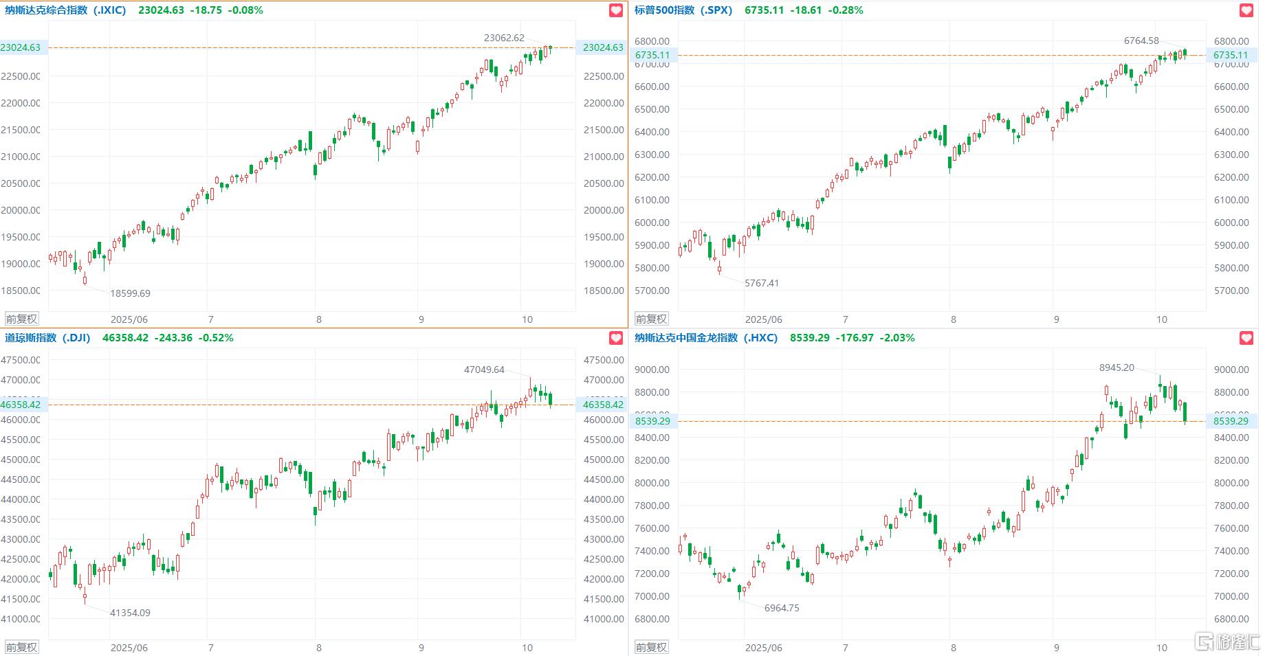 1、美股三大指数集体收跌,甲骨文涨超3%,中概指数跌2.03%;