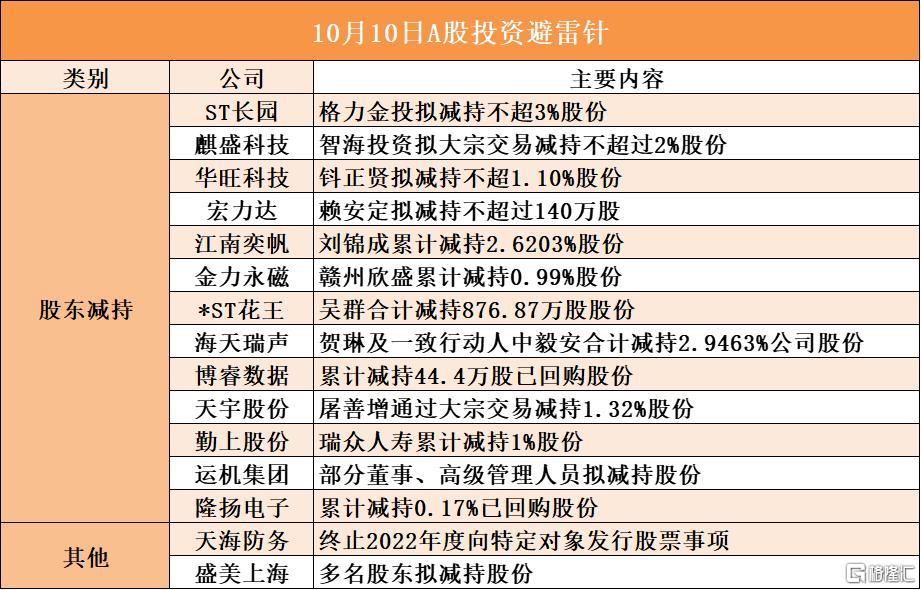 20、A股投资避雷针︱ST长园:股东格力金投拟减持不超3%股份;华旺科技:股东钭正贤拟减持不超1.10%股份。