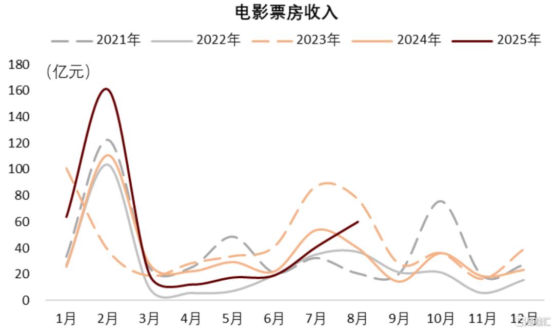 国产游戏版号下发量维持高位,暑期票房表现明显修复。2025年上半年中国游戏市场销售收入1680亿元,同比增长14%,其中移动端游戏表现突出,增速达17%。9月24日国家新闻出版署发布9月国产网络游戏审批信息,当月下发国产游戏版号共计145个,截至9月年内累计值达到1195个。从最近一年的情况看,每月下发国产游戏版号数量处于上升趋势中,其中8月数量166个,创下近5年月度国产版号发放数量新高。游戏上线增厚相关公司利润,上市公司半年报已经有所体现。电影方面,8月中国电影票房收入59.9亿元,暑期档实现票房收入118.52亿元(含服务费),同比去年实现正增长。