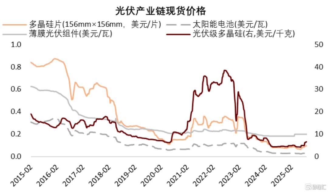 新能源装机拉动电网投资,光伏多个环节价格反弹。9月24日,习近平主席在联合国气候变化峰会发表致辞,提出到2035年中国全经济范围温室气体净排放量比峰值下降7%~10%,根据中金风光公用环保等团队测算,这意味着2026~2035年中国碳强度预计每年需要下降5%左右,与过去十年间3.3%的平均水平相比,碳强度降幅不减反增。根据国家能源局,8月全国电网工程完成投资累计同比增长14%,电源装机方面,8月风电、光伏新增装机分别累计同比增长72%、65%。新能源装机快速增长带来的电网消纳问题有待解决,电网投资景气仍然较高。光伏装机量明显提升,但行业面临供给大于需求、企业亏损等压力,以扭亏为盈为目标的“反内卷”政策正在催化光伏各环节价格企稳回升,9月多晶硅、多晶硅片、太阳能电池价格分别环比上涨5%、3%、6%,光伏组件价格环比持平。