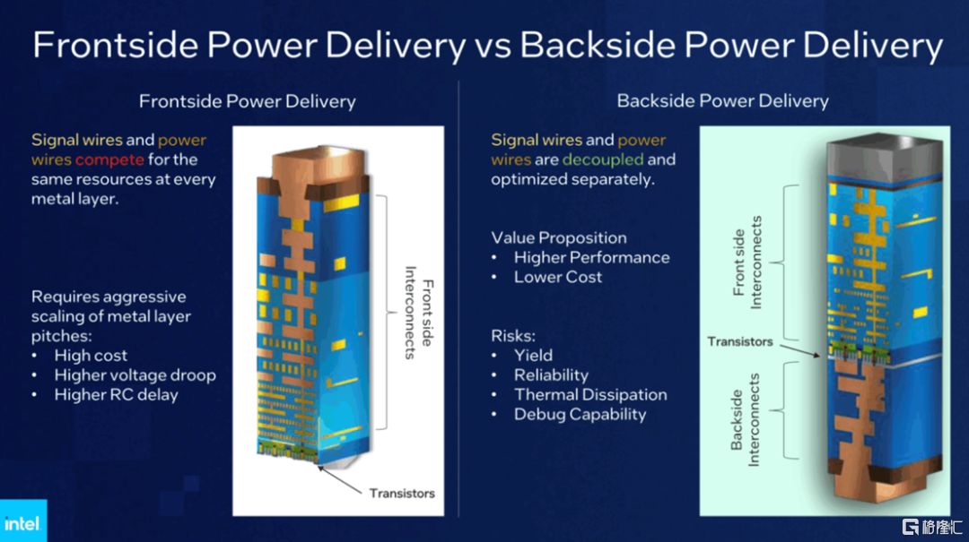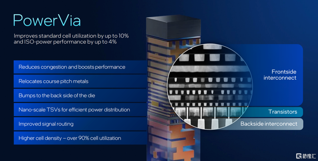 除了新晶体管,能增强电力流动和信号传输的突破性背面供电系统PowerVia也是Intel 18A不得不提的另一个亮点。