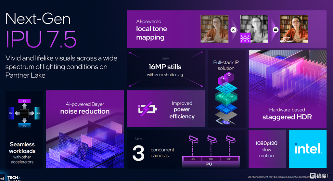 据介绍,由于CPU能提供10TOPS的算力,iGPU能提供120TOPS的算力,NPU能提供50TOPS的算力,这就让基于Panther Lake在处理各种AI任务的时候游刃有余。除了这些算力芯片以外。如上所述,各种连接和显示、媒体部件也是Panther Lake不得不提的重要组成。