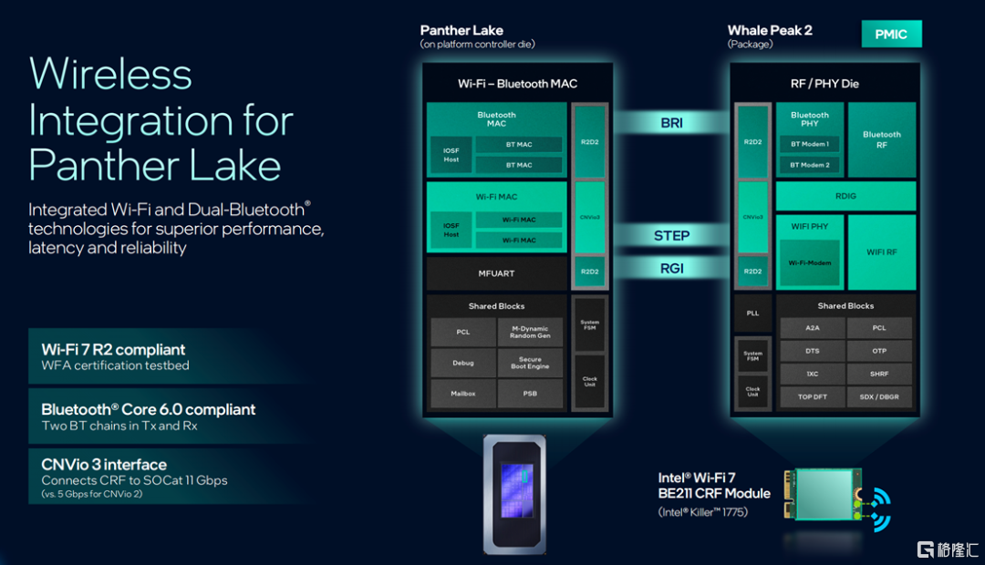 Panther Lake在无线连接方面取得了长足的进步,无论是WIFI,Bluetooth,包括1GbE MAC技术都具备了更强的灵活性。“我们所采用业界最先进的无线技术Wi-Fi 7 R2,将AI PC与更强的连接性能相结合,将显著优化用户体验。”高嵩接着说。