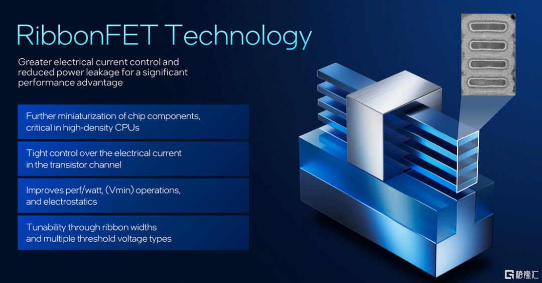 而在英特尔18A上率先使用的RibbonFET,正是这类晶体管的代表。英特尔表示,RibbonFET是公司十多年来首款新型晶体管架构,可实现更大的扩展和更高效的切换,从而提高性能和能源效率。